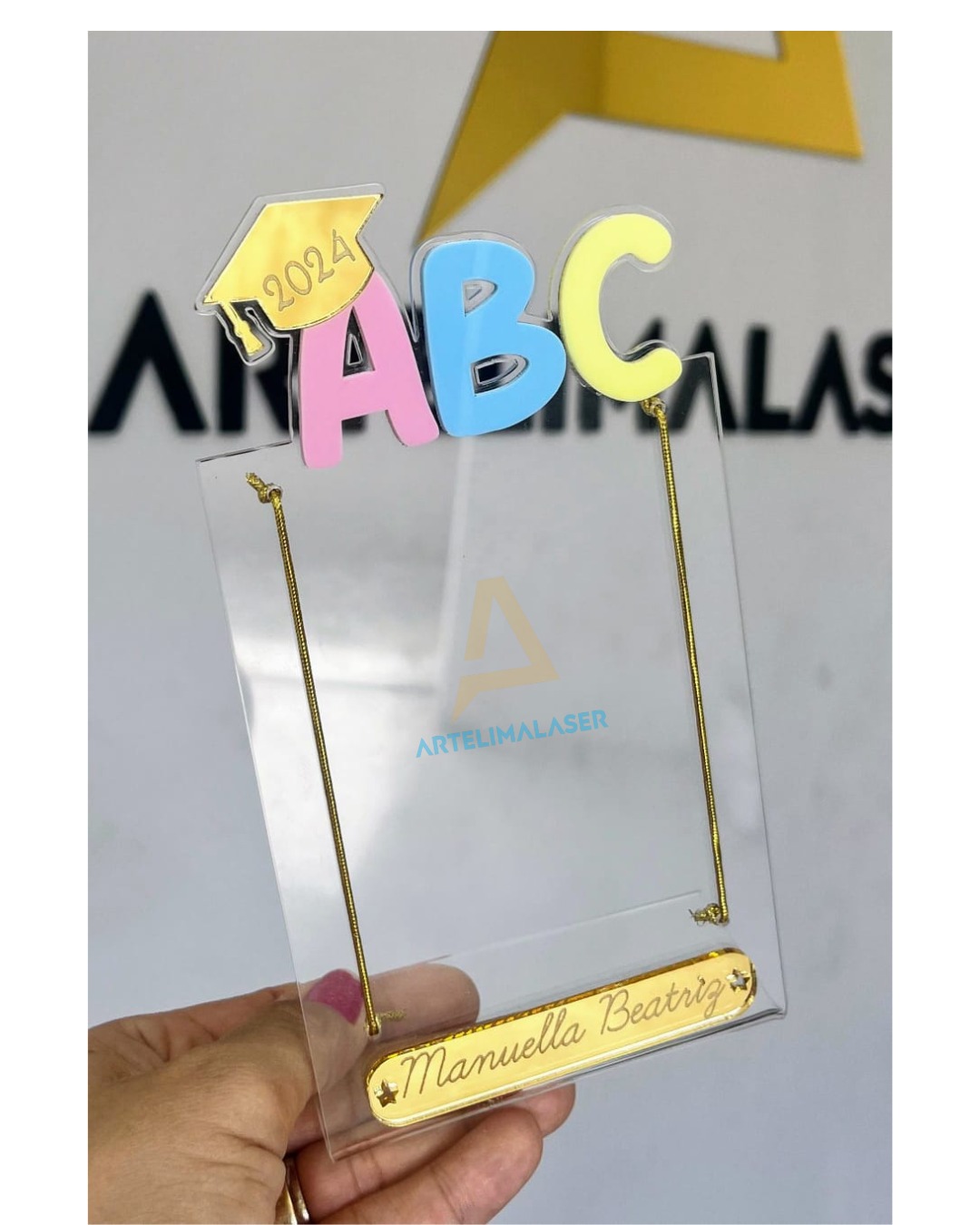 Porta-Retrato em Acrílico cristal com apliques em acrílico (artes iguais)